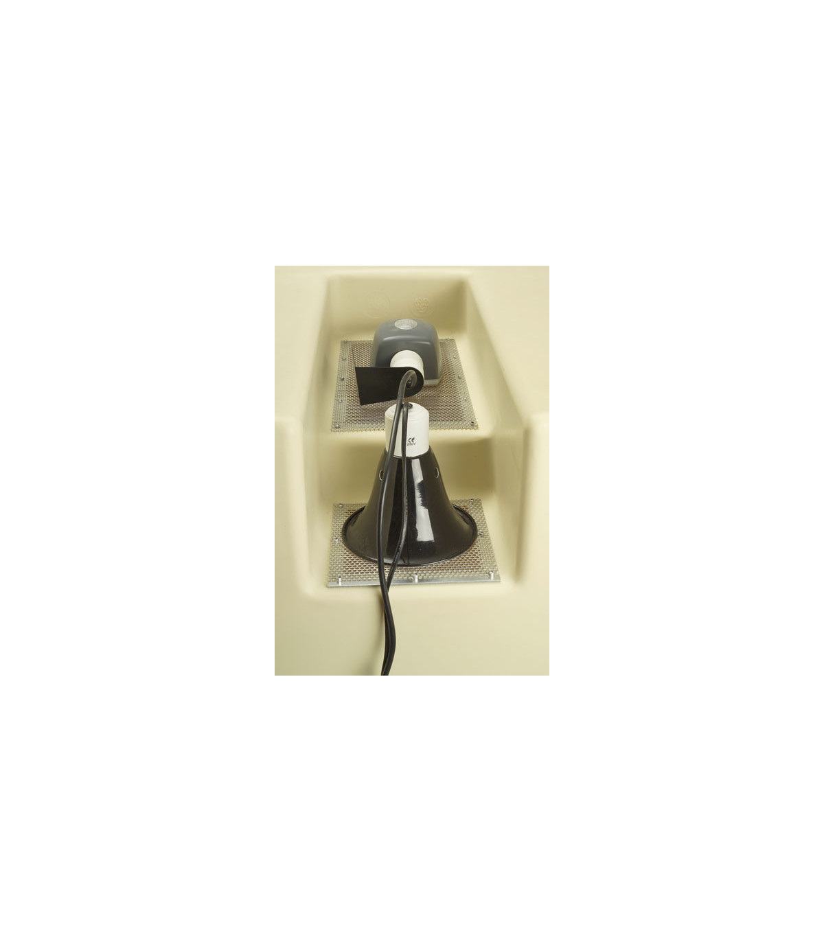 Son design permet l'installation d'un chauffage radiant par lampe sans risque de brûlures pour les animaux. En captivité le chauffage radiant permet d'éviter d'avoir le sol du terrarium surchauffé comme c'est souvent le cas lorsque l'on chauffe par conduction (en utilisant par exemple un cordon chauffant sous le terrarium). S'exposer aux rayonnements des ondes infra rouge est un comportement de thermorégulation très courant et apprécié par les reptiles dans la nature.